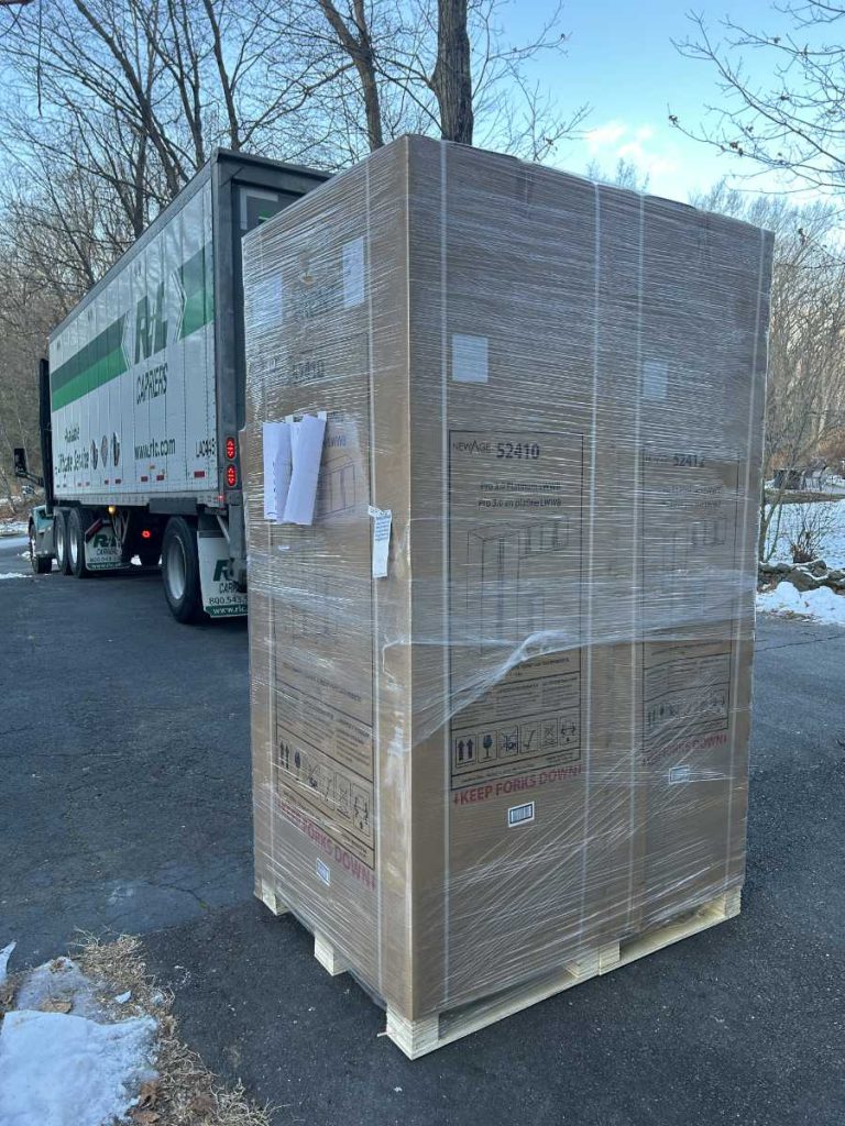 Technically my delivery was to be curbside. They didn’t even need to bring it up my driveway. The whole palletized shipment was relatively tall at 98 1/2″ so it couldn’t be brought in their smaller box truck. It had to be brought in a “pup trailer” which is a short box trailer but tall enough to handle the pallet height. They were concerned about low trees.