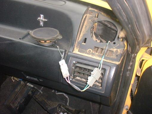 I was recently in a wrecking yard just searching around for parts for my cars, AM/FM/CD Players, AM/FM/Cassettes, speakers, window motors, nuts, bolts and anything else I could find. While in a Ford Aerostar looking around I looked into the back of the mini-van and lo-and-behold I see two small round speakers in the rear tailgate. They looked exactly like the dash speakers in the Fox Body Mustang dash corners. Since I had no dash speakers to compare them to I removed them and walked over to a Fox Body Mustang in the yard. The Aerostar speaker fit in the hole in the front dash perfectly! The pigtails in the wrecking yard Mustang dash were cut off so I couldn't compare the ends to see if they were a match. I took a chance and bought them and took the harness end of the plugs on the speakers in case I needed them.